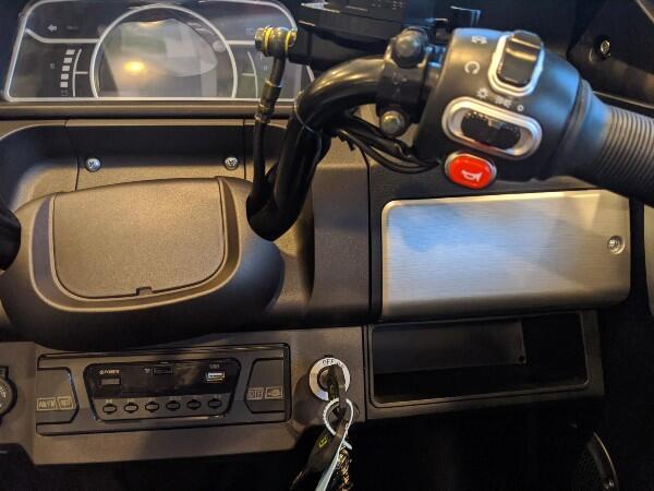 I stedet for en gearstang er det via en knap på styret, at du vælger, om du vil køre fremad eller bakke. Når du bakker, kører kabinescooteren max 5 km/t. Displayet fungerer samtidig som bakkamera med indbygget afstandsmåler, når du sætter i bakgear.