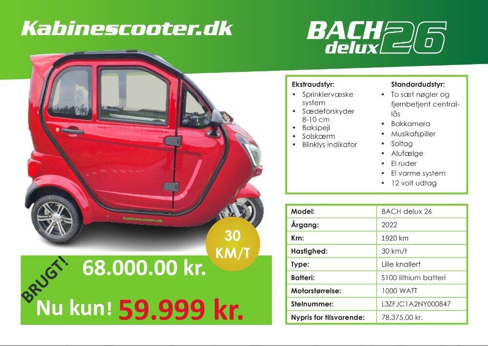 SOLGT - Brugt BACH delux 26 - S100 Lithium batteri - kan køre 90 km på en opladning. (Privat kommission salg) Salgs pris den 6/10-2023 Pris 62.000 kr. --- NY Salgspris den 30/11-2023 59.999 kr.