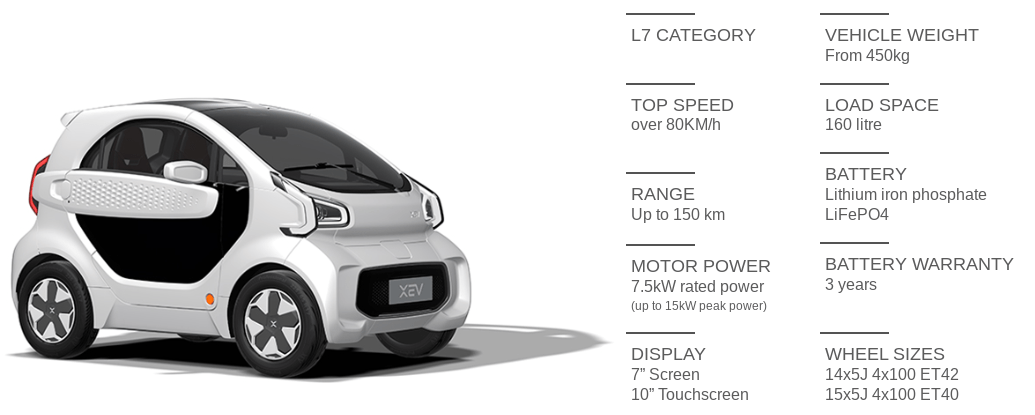 Registreres som personbil M1 som kræver almindeligt bil kørekort i Danmark. Har en tophastighed på 80km/t med plads til 2 personer. 100% Elektrisk mini bil til under 200.000kr
