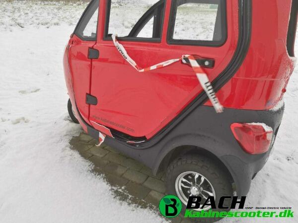 Føreren af den elektriske kabinescooter slap heldigvis billigt. Takket være den kraftige stålramme, som beskyttede føreren under uheldet, kunne hun nøjes med små skrammer. Klik her for at læse meget mere om stålrammen, som fungerer på samme måde som et sikkerheds stålbur i en rally racerbil.
